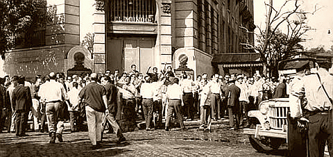 termina cerrando definitivamente , el 22 de diciembre de 1967. El periodista e historiador Santiago Senén González evoca su paso por el mítico diario “El Mundo” (resumen) :La esquina de Río de Janeiro y Bogotá, antigua sede de la editorial Haynes, reunió escritores y poetas de sensible pluma. Tal es así que se llamó “El Olimpo” a la redacción del diario “El Mundo”. Yo me inicié en la sección “De Torpes” (Deportes), llamada de esa forma porque allí empezaban casi todos. Aunque muchos también hicieron sus primeras armas en la sección de turf, como Raimundo Calcagno (Calki), quien sería un prestigioso comentarista de cine. En la cobertura del fútbol se empezaba con partidos de Primera B y después pasabas a la categoría superior, era un escalafón por función y no por antigüedad, como dicta el Estatuto profesional , es decir de aspirante a reportero, de cronista a redactor, etc. Cuando llegué al diario, moraban ese “Olimpo”, entre tantos dioses más, Roberto y Conrado Nalé Roxlo (Chamico), el crítico de arte Arturo Romay, el escritor Horacio Rega Molina, y los poetas Amado Villar y Roberto Ledesma. En aquellas épocas trabajaban comentaristas deportivos como Miguel Ángel Merlo y Adolfo Rienzi Echeverría, Haroldo Foulkes y Luís Alberto Reilly, conocido en el ambiente del box como “Billy Kerosene”. Pero uno de los que más me llamó la atención fue José Torrado que, bajo el seudónimo de “Offside”, hacía reflexiones sobre las hinchadas , siempre con un eterno cigarrillo negro en los labios, escribía sólo con lápices. A los cuales les sacaba punta raspándoles su mina con alguna caja de fósforos. Y si bien tenía más de setenta años, era un acompañante entusiasta de nuestras incursiones al “Tabarís” o al “Maipo”. Otro amante de la noche fue Miguel Ángel Bavio Esquiú, jefe de la sección “Deportes” del diario. Creador además del singular personaje porteño llamado “Juan Bondiola”, que en cierta forma evocaba su propia figura: alto y pintón, hombre de la noche, jugador de billar y amante de las “potrancas”. También íbamos al restaurant “El Mundo”, que estaba dividido en tres partes: una parte para los gráficos, otra para los de redacción, y en una mesa tras un gran biombo comía el director y los secretarios. A veces salíamos por la noche a comer en algún boliche de la calle Yerbal, o al bar de Río de Janeiro y Rivadavia , además, frecuentábamos el club Haynes, que quedaba a una cuadra. Me acuerdo que allí, cuando entraba por ejemplo Octavio Rivas Rooney, el mozo decía automáticamente en su castizo característico “marche dos botellas de vino”.¿Dónde fue a parar el gran mapamundi que coronaba el edificio de Río de Janeiro al 300? No lo sé. Cuando cerró el diario desapareció todo. Pero sé que ese globo terráqueo, punto de referencia del barrio y de la ciudad toda, fue trasladado antes de la demolición. Un día a Tato se le fueron las ganas de bromear cuando su colega sacó un revólver, lo dejó sobre el escritorio, y le preguntó: ¿ querés saber el resultado de hoy ? Otra historia que se instaló en mi memoria fue cuando lo echaron a Octavio Rivas Rooney. Resulta que lo habían mandado a cubrir un paro ferroviario en los Talleres del Sarmiento , pero apenas llegó al lugar, aquel viejo militante socialista comenzó a arengar a los trabajadores. Por supuesto, no sólo lo echaron del diario, sino que lo detuvieron en la Penitenciaría Nacional de la calle Las