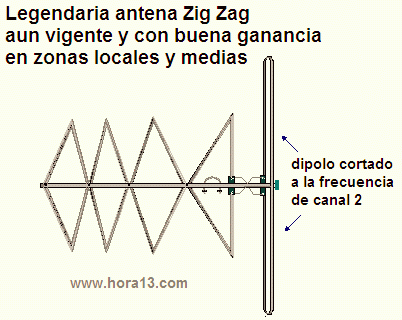Hace rato que muchos lectores nos venían alertando que en muchos comercios del Gran Buenos Aires se vendían las viejas y legendarias antenas tipo "Zig Zag " . Y la pregunta en general era " si aun servían" o eran viejos rezagos de guerra que algún comerciante pícaro las saco de vuelta a la luz . Lo cierto que fuimos a comercios que nos indicaron algunos lectores y resulto ser verdad , la antigua Zig Zag estaba en vidriera . Pero lo curioso fue que resulto ser una muy buena antena y con ganancia estable en los canales medios y bajos y de regalo también captaba algunos de canales UHF , todos cercanos claro . Le habíamos perdido el rastro de esta antena realmente " multicanal ", aun así la probamos en varios sitios del cono urbano y fue admirable su prestación , con un dipolo sintonizado a la frecuencia de canal dos y resonante en el cuatro mas el acople a la antena zig zag de canales medios la vieja y olvidada antena resulto ser en muchos casos mas eficaz que la clásica flecha de varios elementos , muy robusta y con una pequeña orientación hoy afirmamos que la pueden comprar con los ojos cerrados . |