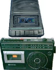 Llegaban los 70 y se moría de a poco los aparatos a válvulas " o tubos de vacío" el plástico y los transistores llegarían para quedarse definitivamente miles de grabadores y radios serian fabricados en forma "estándar" a una rapidez asombrosa , menos consumo , menos voltaje y mas prestación , mejora notablemente la calidad de sonido tanto en grabación como reproducción . Aparecen los primeros grabadores con radio FM muy reducidos y prácticos , fáciles de transportar , Por primera vez se brinda al usuario comun la posibilidad de realizar grabaciones "domesticas" y el casette como elemento reproductor se quedaría por varias décadas (en la figura arriba uno de los primeros modelos de grabador años 65 al 78 y el segundo modelo duraría en el mercado hasta inclusive los años 90) |