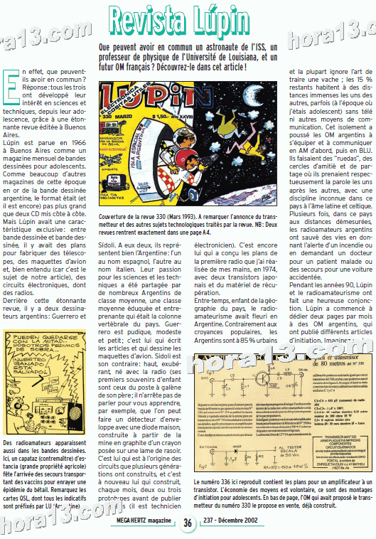 En el año 2002 una revista Magazine de ciencia y técnica de Francia le hizo un homenaje a la revista Lupin y sus creadores (con un clic sobre la imagen la llevas a a su tamaño original) |