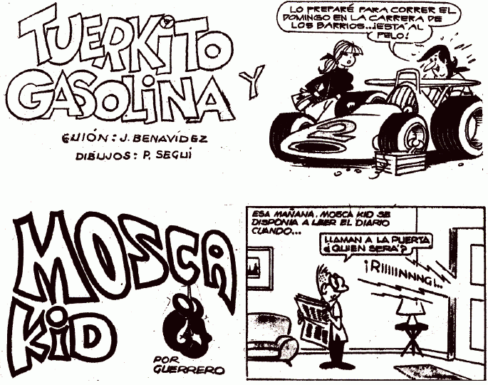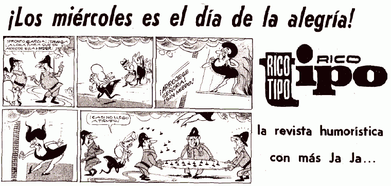 Al Feñique , Tuerkito y Gasolina , Mosca Kid Bicho y Gordi , Piedrito y Saurito Hercu Sansonacho , Johnny Retruenos Aventuras de Resorte , Purapinta , Saltapones Publicidad revista Rico Tipo