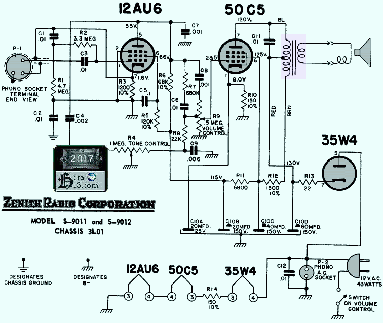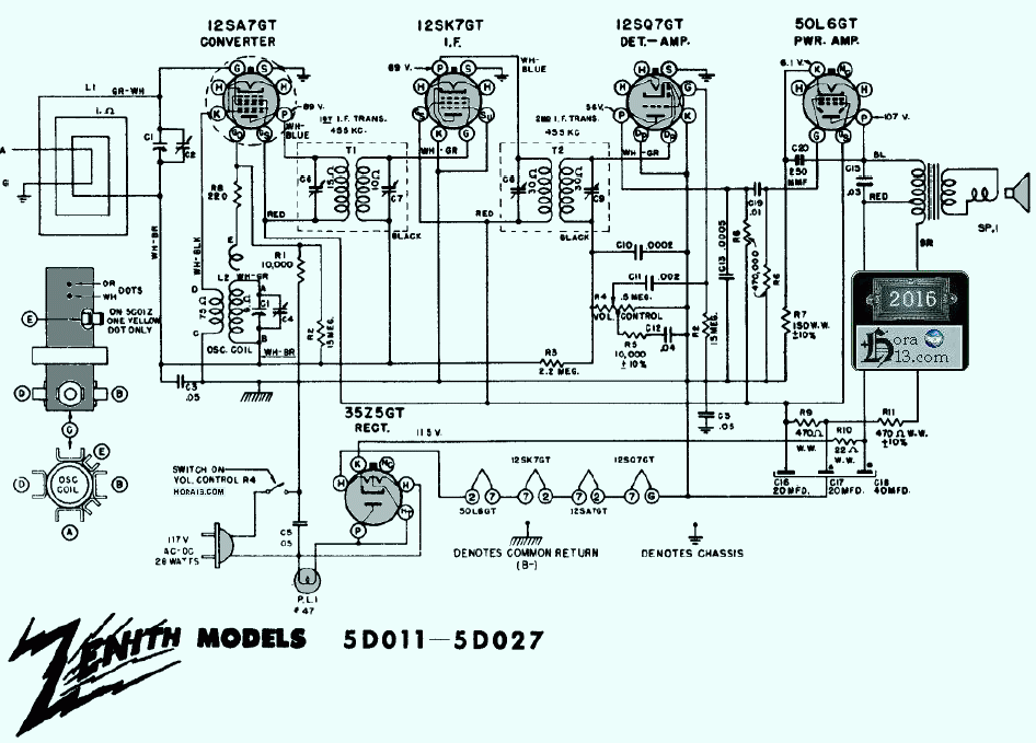 Circuito radio Zenith modelos 5D011 al 5D027