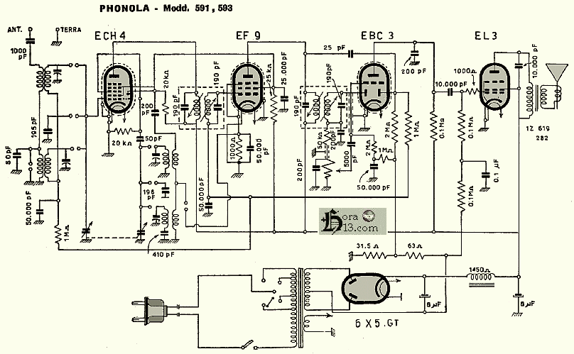 esquema radio Phonola modelos 591 y 593