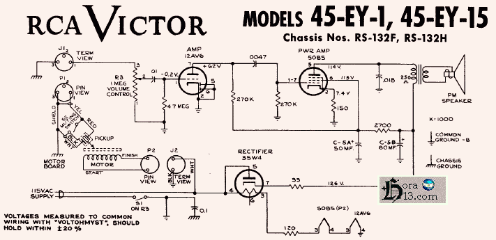 esquema Amplificador tocadisco RCA 45EY3