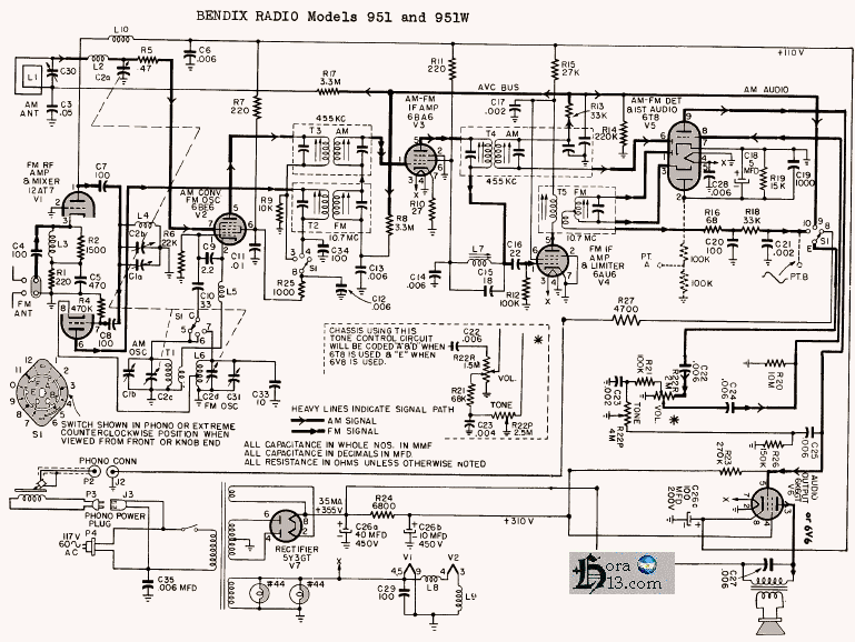 esquema radio Bendix modelos 951 y 951 W