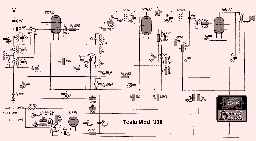 esquema radio Tesla modelo 308