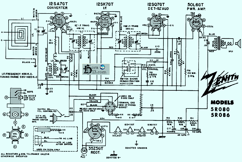 Circuito radio Zenith modelos 5R080 / 86