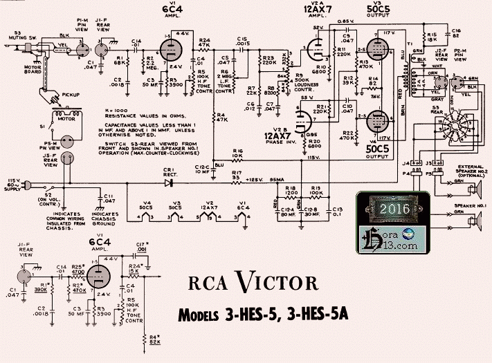 esquema Amplificador tocadisco RCA 3HES5