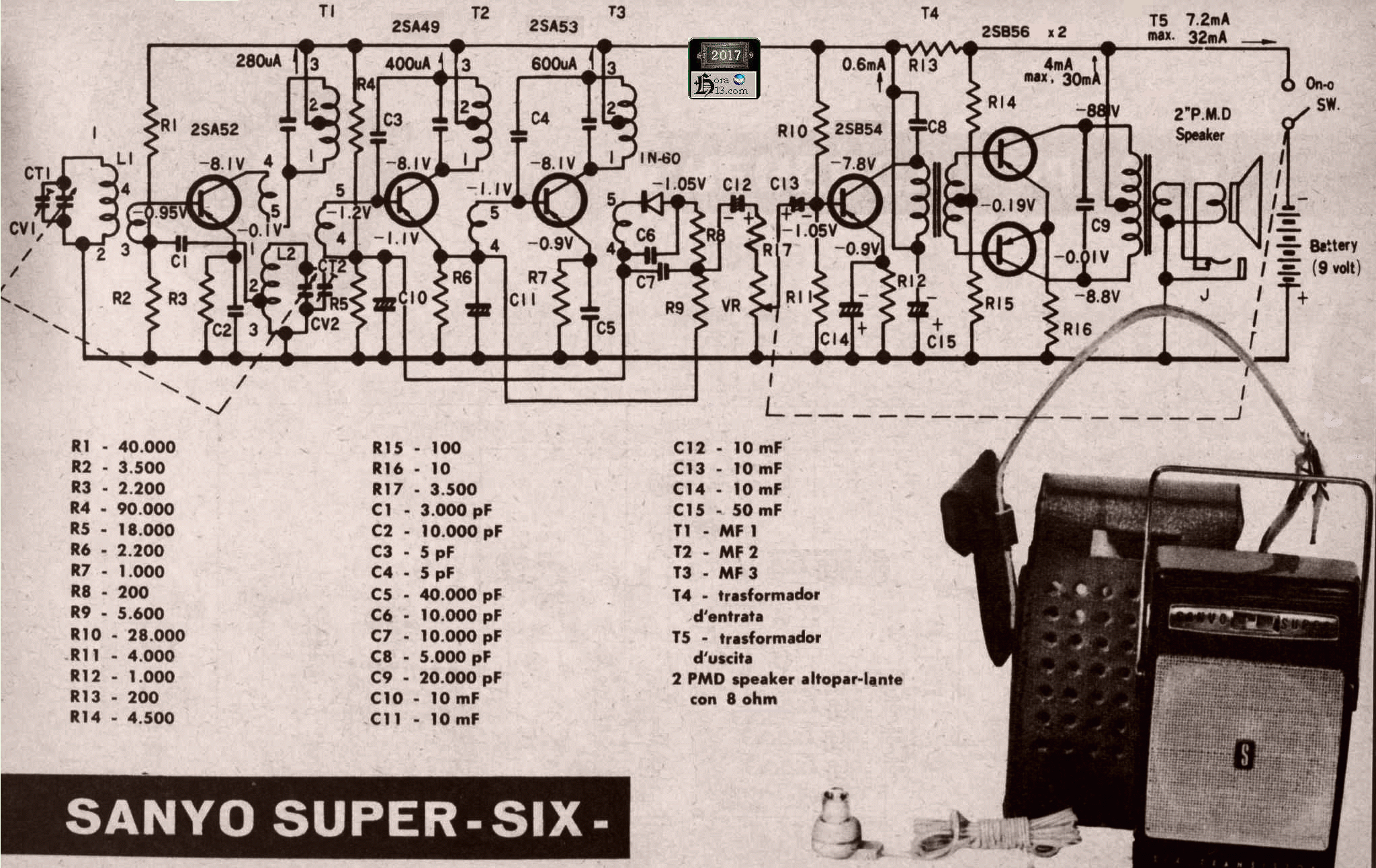 esquema Sanyo transistor modelo Super Six