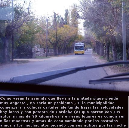 Bueno queridos lectores , después de un año volvimos y no había mucho para mostrar La Pintada sigue siendo un pueblo casi olvidado , cada día mas viejito y deteriorado . Si bien es cierto y lo reconocemos ya lo leerán en el próximo informe que Villa Dolores creció rápidamente y hoy es una de las ciudades mas confortables y con bastante tecnología de punta a disposición del turismo La pobre Pintada se quedo ahí como esperando su turno .. Podríamos colocar muchas imágenes mas , pero son las mismas que están abajo luego ya no tiene sentido . Quiero destacar que las Altas autoridades de Villa dolores nos atendieron muy bien y fueron muy cordiales por lo menos conmigo Pero a ver si le ponen un tiempito a La Pintada que se nos muere de apoco y es una lastima , digo .... Gracias / Jaker2 |