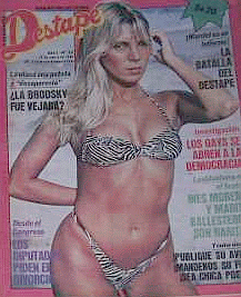 pornográfica " . ![]() ![]() ![]() En forma simultanea competían en los kioscos la renombrada y muy promocionada " Play Boy " con otro formato mucho mas estilista y profesional cuidando cada detalle de su tapa y es lógico suponerlo , todos recordamos que la famosa la empresa en los años 70 junto con su otra competidora como Penthohouse disponían de medios y muchísimo dinero para ofrecer mejor una presentación y mayor calidad fotográfica (leer derechos de autor) Fotos de las famosas Argentinas al desnudo en los años 80 ( un clic sobre cada foto para ampliarla )Susana Gimenez Carmen Barbieri - Noemi Alan - Libertad Leblanc - Karen Reichardt - Betiana Blum Beatriz Salomon - Nelida Roca - Marcela Vera Wilson Moria Casan - Reina Reech - Mariquita Gallegos - Maria Noel Nanci Herrera - Lorena Paola - Zulma Faiad - Elvia andreoli - Monica Guido - Adriana Aguirre Yuyito Gonzalez - Vicky olivares - Cristina Albero Susana Traverso - Silvana Suarez - Edda Bustamante Camila Perise - Graciela Alfano - Alejandra Aquino - Leonor benedetto katja-alemann - Susana Romero - Luisa Albinoni - Nacha Guevara - Silvia Perez - Alejandra Roth Documento editorial informe exclusivo de hora13.com Estela González - Raquel Mancini - Silvia Gette - Adriana Salgueiro - Cecilia Di Carlo Sandra Villarruel - Silvia Peyrou - Thelma Tixou - Adriana Brodsky - Dalma Millevos
