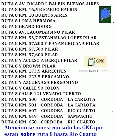 Todas las GNC sobre ruta 8 hasta Río Cuarto ( para copiar o imprimir )
