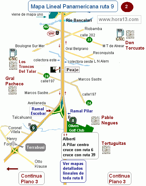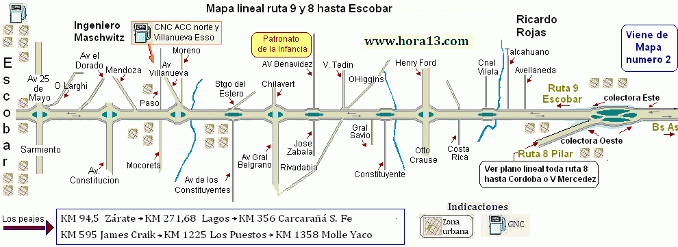 Mapas lineales bien detallados de toda la Panamericana , Ruta 9 desde Bs. As. pasando por Del Talar , Tortuguitas Pacheco , Pablo Nogues , Otamendi , Escobar Campana , Baradero , San Pedro , Ramallo , Rosario y Córdoba |