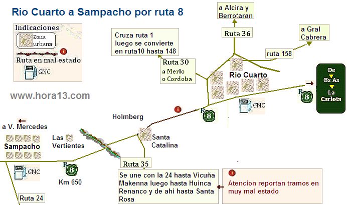 (muy practico para llevar) Buenos Aires hasta Rio Cuarto por ruta 8 con GNC , se informan los cruces avenidas y estado del camino |