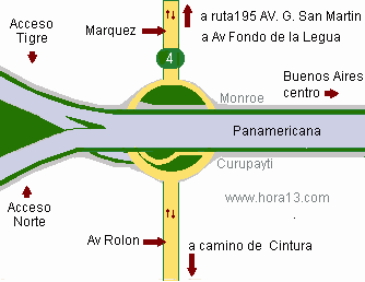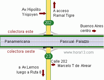 Panamericana y 202 : Por AV Lemos a Ruta 8 y por H .Yrigoyen a ramal Tigre