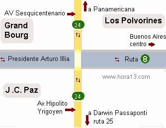 Las avenidas Ricardo Balbin , Eva Peron Arturo Illia , etc y rutas que la cortan , Ruta 4 , ruta 23 , ruta 24 , ruta 26 , ruta 234 , ruta 34 ; Peajes y expendios de GNC (ver copiar imprimir) |