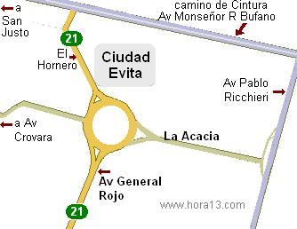 Rotonda Querandí: Av. Gral. Rojo (Ruta 21) La Acacia trayecto Evita y San Justo