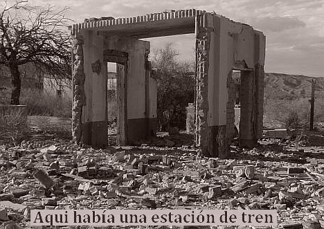 Estación correntina El Sombrero esta ubicada en el departamento de Empedrado sus vias unían Corrientes con Curuzu Cuatia ( ampliar ) Estacion Muñecas Fundada en 1898 por el Ferrocarril Central Norte ( Hoy nada quedo solo basural ... ) (ampliar) Estación Anasagasti se ubica en el partido de Navarro hoy esta usurpada y en pésimo estado ...( ampliar) Udaquiola era una estación ferroviaria, ubicada en el Partido de Ayacucho, en la Provincia de Buenos Aires ( ampliar) La estación Azcuénaga esta ubicada en el Partido de San Andrés de Giles , Provincia de Buenos Aires y corresponde al Ferrocarril General Bartolomé Mitre (ampliar) Estación El Recado se encuentra en el Partido de Pehuajó y formaba parte del ramal del FCRPB solo queda de ella algunos despojos y una triste fachada ...(ampliar) Estación Casalegno se encuentra en la Provincia de Santa Fe hoy ya no brinda ningún servicio ...(ampliar) La estación Baibiene se encuentra en el Departamento Curuzú Cuatiá en la Provincia de Corrientes.....(ampliar) Estación El Guardamonte se encuentra en el departamento de Leales , provincia de Tucumán ....(ampliar) Estación Choya o lo poco que queda de ella , se encuentra en la provincia de Santiago del Estero....(ampliar) Estación Mota Botello otro ejemplo del abandono y el vandalismo , se encuentra a unos 15 km al oeste de la ciudad de San Fernando del Valle de Catamarca ...(ampliar) La estación Cerro Negro o lo poco que queda de ella se encuentra en el Departamento Tinogasta esto es en la provincia de Catamarca formo parte de la red ferroviaria Argentina y del ferrocarril General Belgrano. ...( ampliar) La estación Cerro Blanco se encuentra en el departamento de Deseado en la provincia de Santa Cruz , habilitada en 1914 por el ferrocarril Patagónico , mas tarde clausurada en 1978 luego nada quedo de ella .... (ampliar) La estación Trigales o lo poco que que queda de ella esta ubicada en el Partido de Leandro N. Alem Prov. de Bs As La estación Las Tahonas se encuentra en el Partido de Punta Indio, esto es en la Provincia de Buenos Aires En 1980 fue clausurada por el gobierno militar La estación La Chispa fue inaugurada en 1911 por el Ferrocarril Central Argentino la misma se encuentra en el departamento de General López en el sur de Santa Fe La Estación San Germán se encuentra en el Partido de Puan en una localidad que lleva su mismo nombre esto es en la Prov. de Buenos Aires , hoy sin vías , sin tren , sin estación y sin pueblo ...( ampliar) |