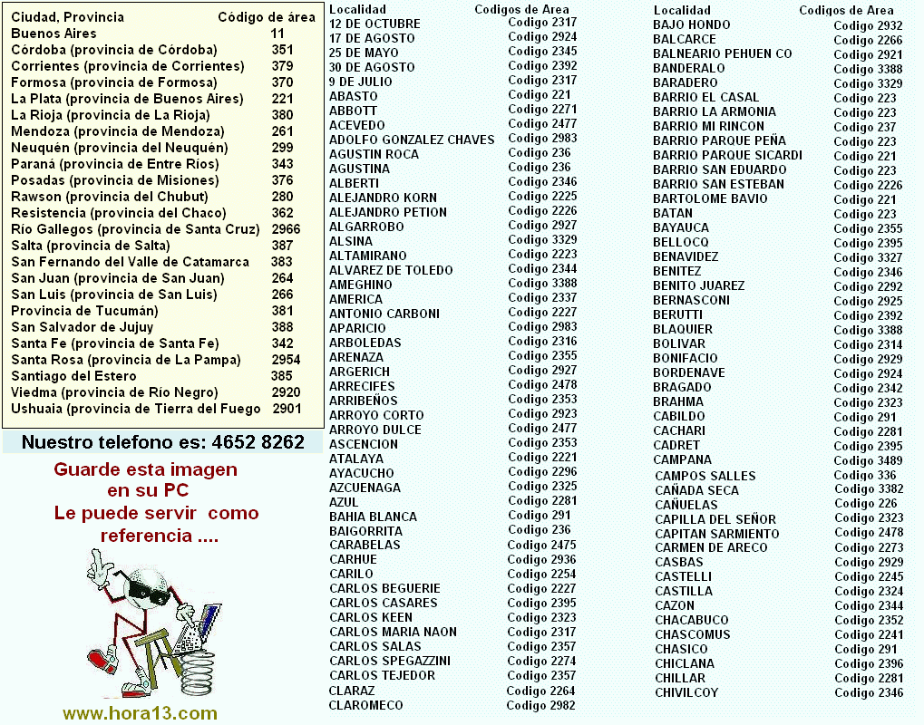 Nos presentamos en sociedad - Teléfono y Códigos de área