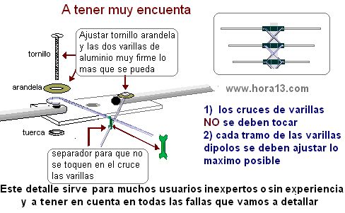 Primero es de destacar la pésima calidad de las antenas comerciales porque estas se deterioren con mucha facilidad y su efectividad o rendimiento es muy bajo a corto plazo , miren a su izquierda y se darán cuenta lo grave de este problema , las varillas dipolos cada vez mas finas y muchas canaladas en el centro esto las hace vulnerables a vientos , aves , etc mas etc y si a esto le sumamos los finísimos alambres de aluminio que unen las distintas varillas a lo largo de la antena , tendremos a muy corto plazo una antena inestable y con la perdida de ganancia general o en algunos canales . Y una antena instalada por un usuario común no se puede andar bajándola cada cinco días para revisarla por las dudas y menos aun para aquel ciudadano que sin saber nada y porque tendría que saber algo no ? compra una antena y confía que funcionara por un tiempo bastante largo sin problemas . Bueno es de destacar que hoy por hoy esto no se cumple las antenas son de pésima calidad en su armado o diseño y me olvido de mencionar que para " ahorrar costos" ya ni vienen con tornillos de fijación , ahora las " remachan" y esto es otro problema que veremos mas tarde . Otro inconveniente a solucionar es que los aisladores y soportes de las varillas son tan precarios y de pésima calidad que se parten solos , de ahí que vemos a diario muchas antenas con sus varillas colgando hacia abajo o en muchos casos , esas varillas no existen mas porque ya cayeron al piso Como solucionamos esto ? Mire primero debemos tener muy bien en claro donde compramos las antenas en el caso que no tengamos |