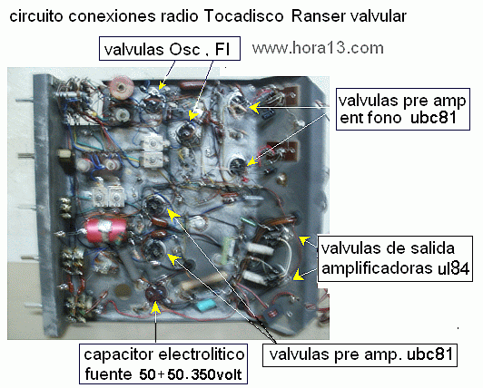 Una vez en mi época expresamos : reparar tocadiscos es mas fácil porque solo tienes la etapa amplificadora y nada mas...no fue tan así ..tenia otras fallas y "otros" problemas distintos , al final eran "problemas igual" - Un tocadiscos de la década de los 60 y 70 , tenían en un chasis pequeño dos o tres válvulas , una era pre amplificadora y otra de salida en el caso de la figura "A" la etapa de salida por un válvula tipo "6AQ5" de 7 patas esta necesitaba otra para pre amplificar el sonido y se colocaba "adelante" tipo 12au7" o similar , sus fallas mas comunes , por supuesto el molesto zumbido , aunque a veces venia de los cables "mallados" (blindados) que venían del "pick up" eran muy finos y sumados al movimiento constante del brazo del giradiscos siempre alguno se "soltaba" y producía el molesto ruido , otro problema era el deterioro del capacitar o filtro de entrada ( un tubo plateado bastante grande) generalmente un 100 Mf. por 350 volts o similar , la falta de sonido total se podía deber a una falla muy común la rotura del transformador de "salida" porque el primario era de alambre muy fino y solía cortarse a menudo no así el secundario que alimenta el parlante que por ser de 8 ohms es alambre grueso , de todas formas hay que cambiarlo . Desde ya descontando las fallas de los elementos como resistencias y capacitores que hacen al circuito de conexión interna , que pueden suceder . Otra falta de sonido total se podía deducir a simple vista "ver si encienden los filamentos de las válvulas" o verificar si hay tensión en las placas de las mismas PASAMOS AL AMPLIFICADOR SIGUIENTE : |