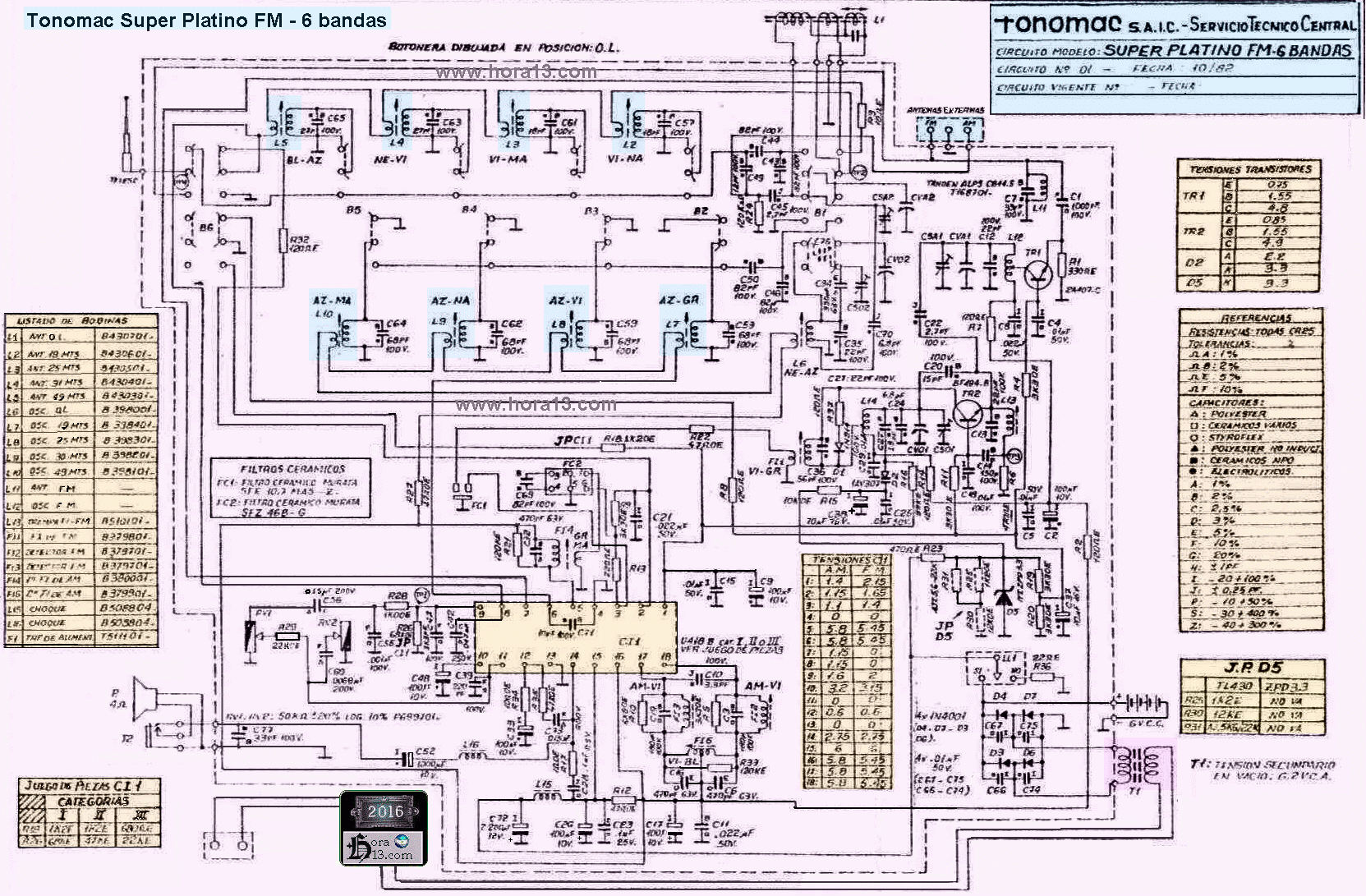 Radios : Noblex 7 mares , Topeco , toda la línea Philips , Philco y Philco Tropic , Spica RCA Victor , General Electric , Sony Tonomac , Emerson , Fapesa , Grunding ,Nobleza Radio , National Panasonic , Ache , Delco , Astor , Noblex Carina , Maguire Crosley Firestone , Jewel , Montgomery , Lorenz , Radialva , Sonora , Tesla , Askar Arvin , Capehart , Adwater Kent , Douglas Invictus , Siera , Radios con bobinas BYE bobinas Topeco , Siemens , Orion , Vica , Askar , Invicta y otras marcas poco conocidas .