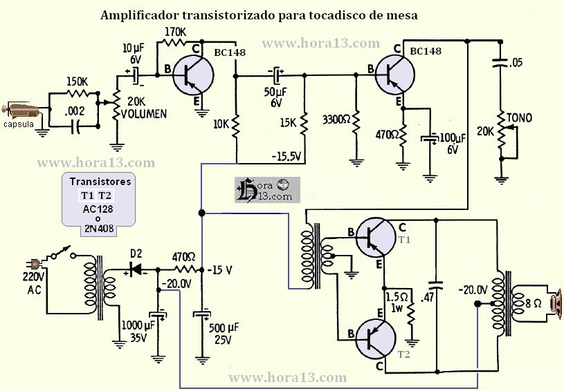 Amplificador para tocadisco de mesa Mas circuitos y esquemas de amplificadores aqui