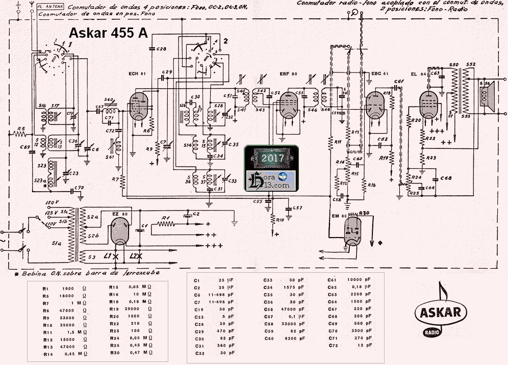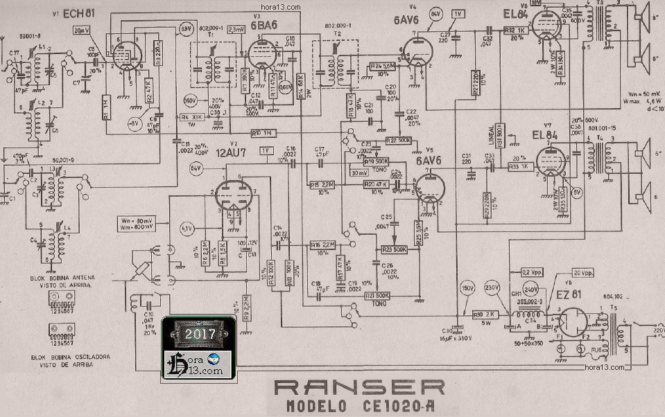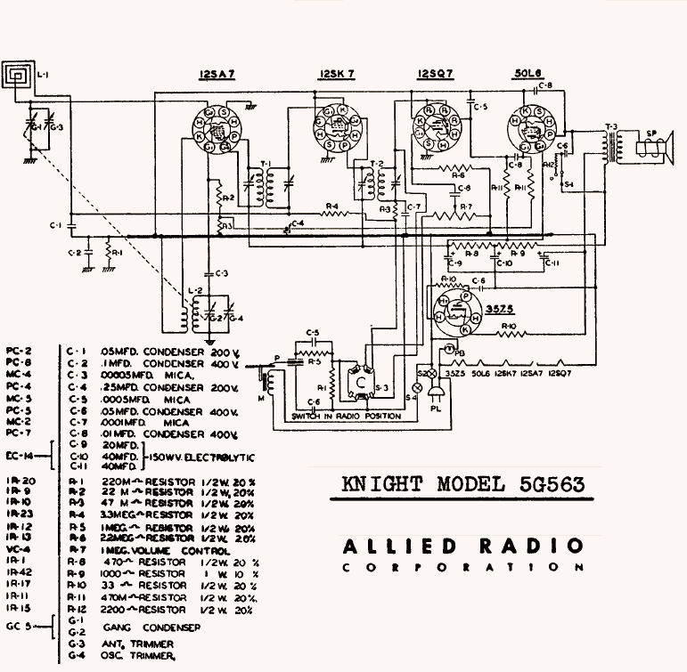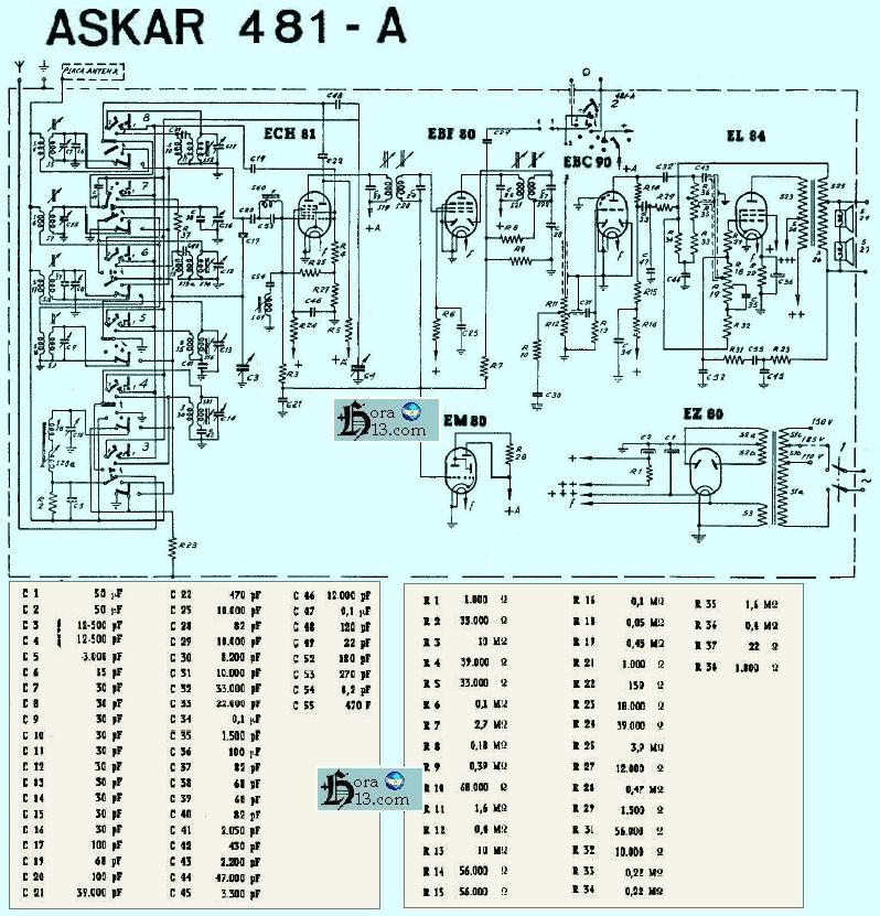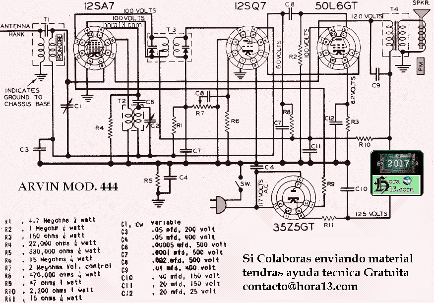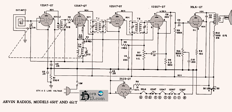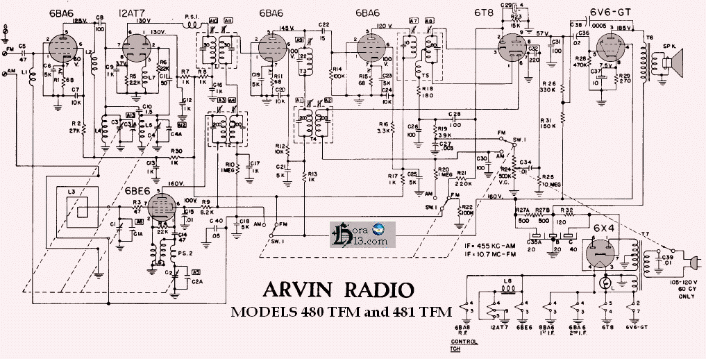 esquema radio Arvin modelos 480 TFM y 481 TFM