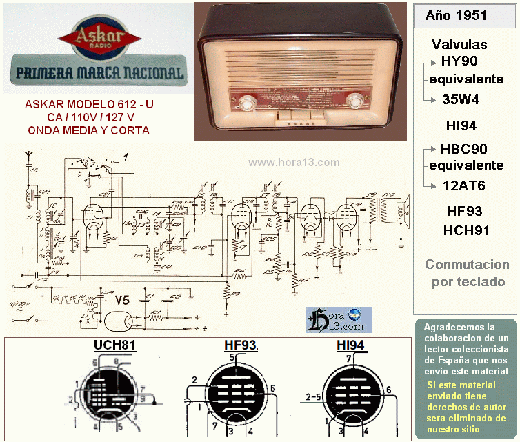 Circuito , diagrama y especificaciones Radio Askar modelo 612 U