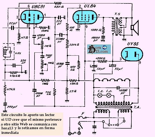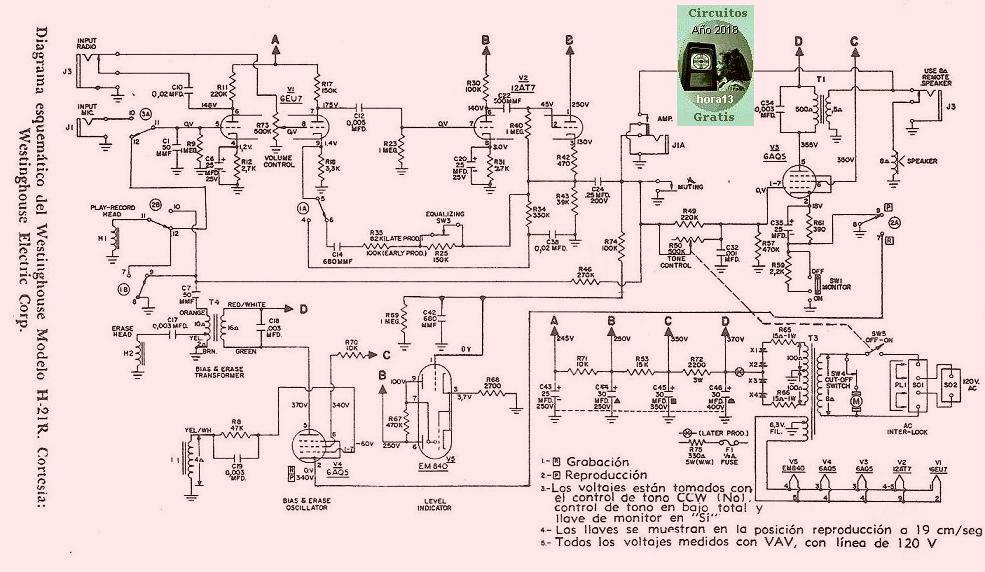 Podrás bajarte los circuitos y esquemas de radios antiguas a válvulas , TV comerciales a válvulas y también a transistores , tocadiscos ,amplificadores , combinados , grabadores , auto radio , transmisores y algo mas... ( Usted esta en : circuitos parte dos) - ( ver parte uno ) ( parte tres ) ( cuatro) (cinco) (seis) (siete) |