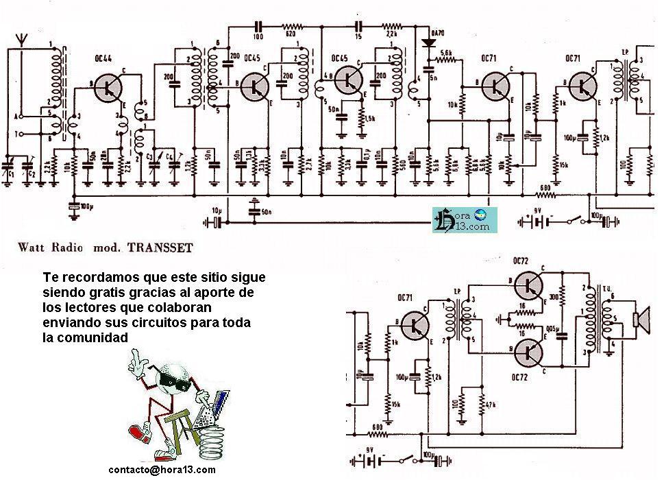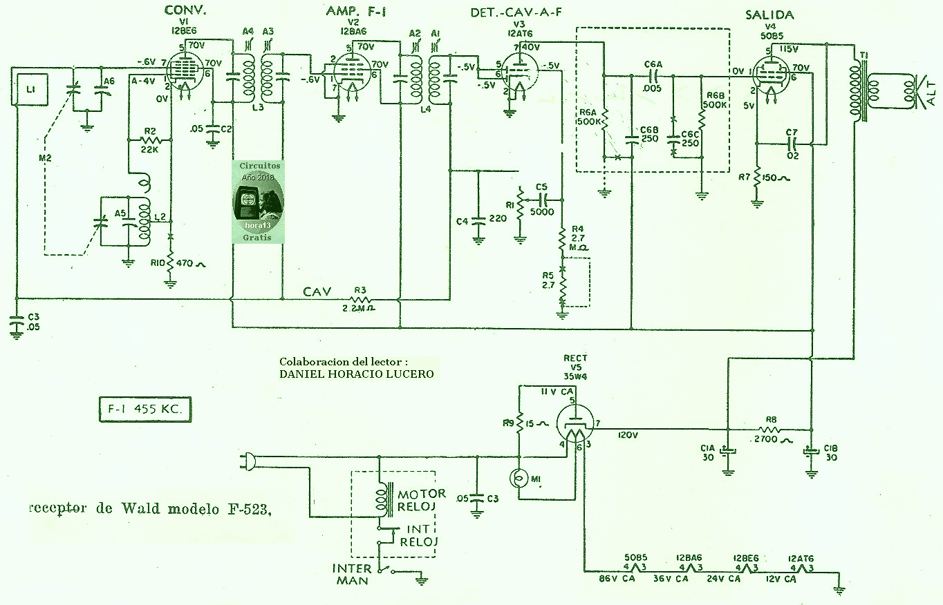 Podrás bajarte los circuitos y esquemas de radios antiguas a válvulas , TV comerciales a válvulas y también a transistores tocadiscos , amplificadores , combinados , grabadores , auto radio , transmisores y mucho mas ... ( Usted esta en : circuitos parte siete) - ( ver parte uno ) ( parte dos) ( parte tres ) ( parte cuatro) ( parte cinco) ( parte seis ) |