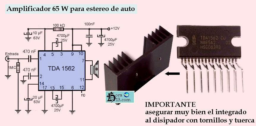 65W para auto estereo ( Tda 1562 ) Amplificador