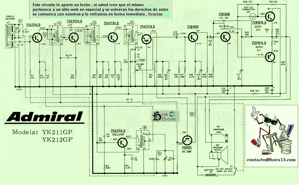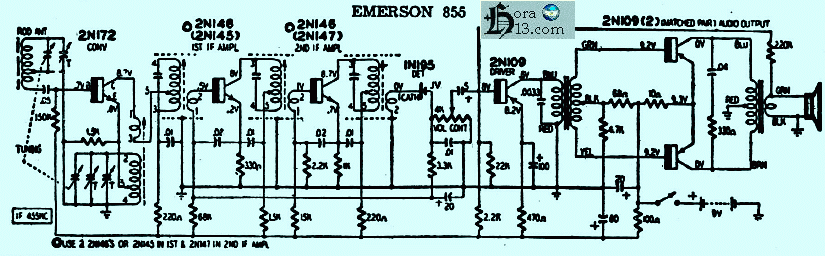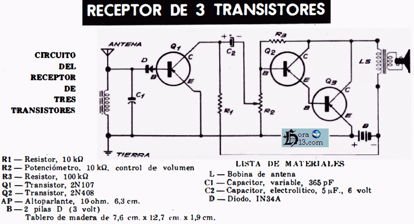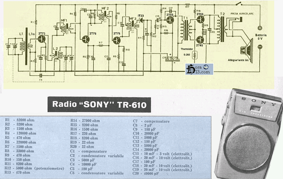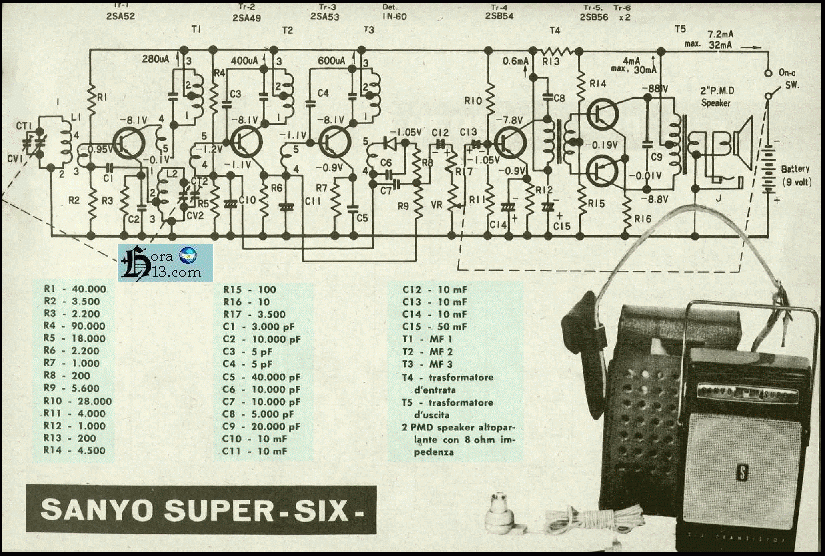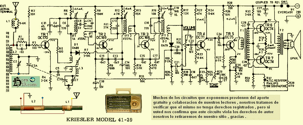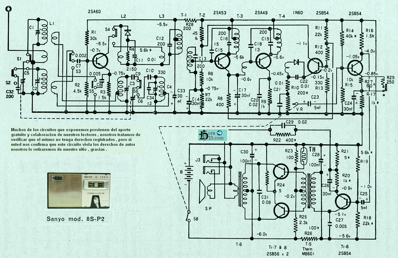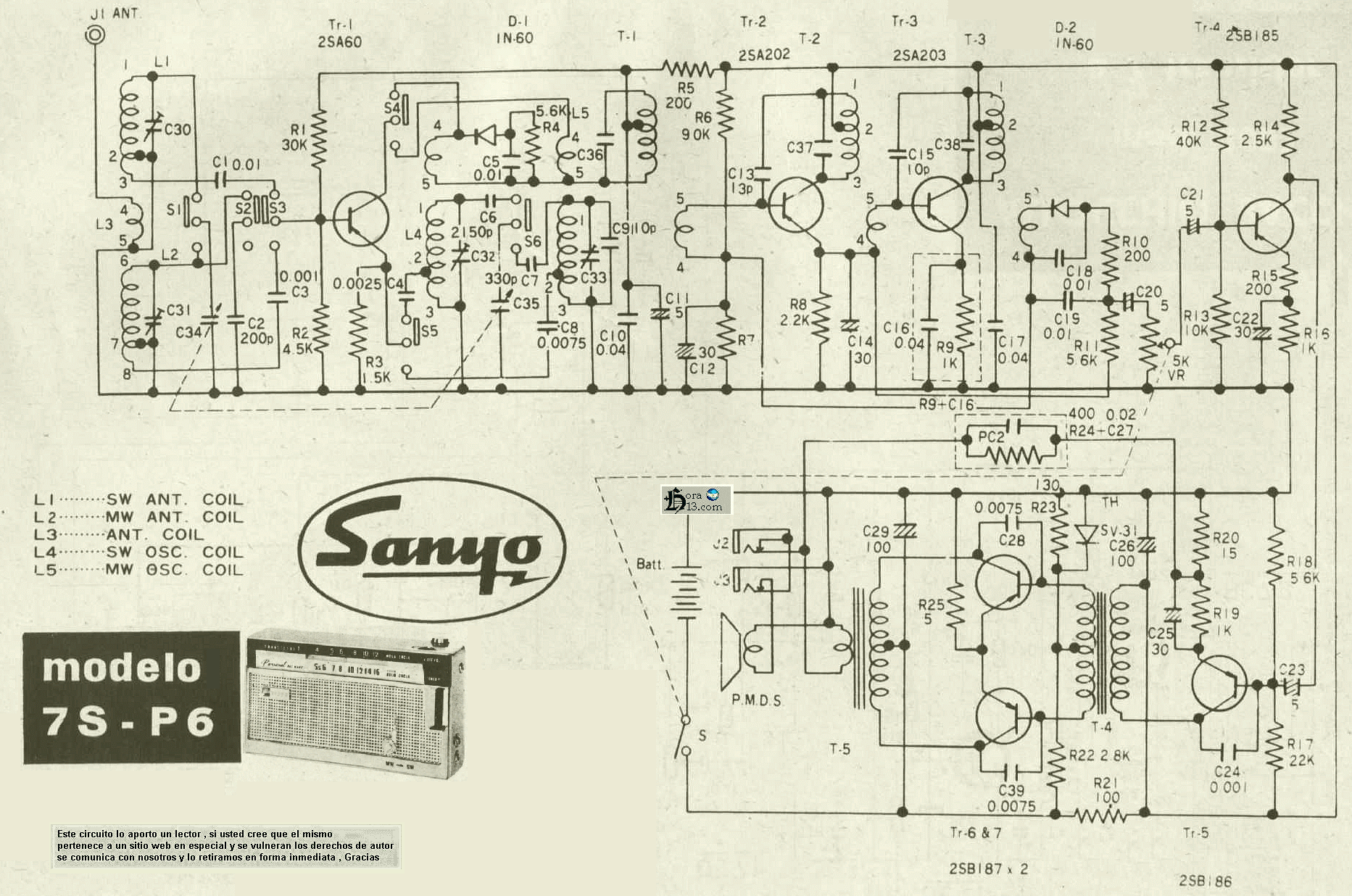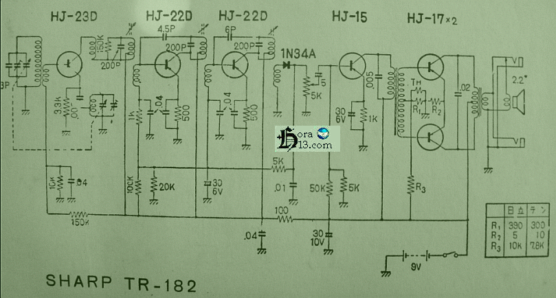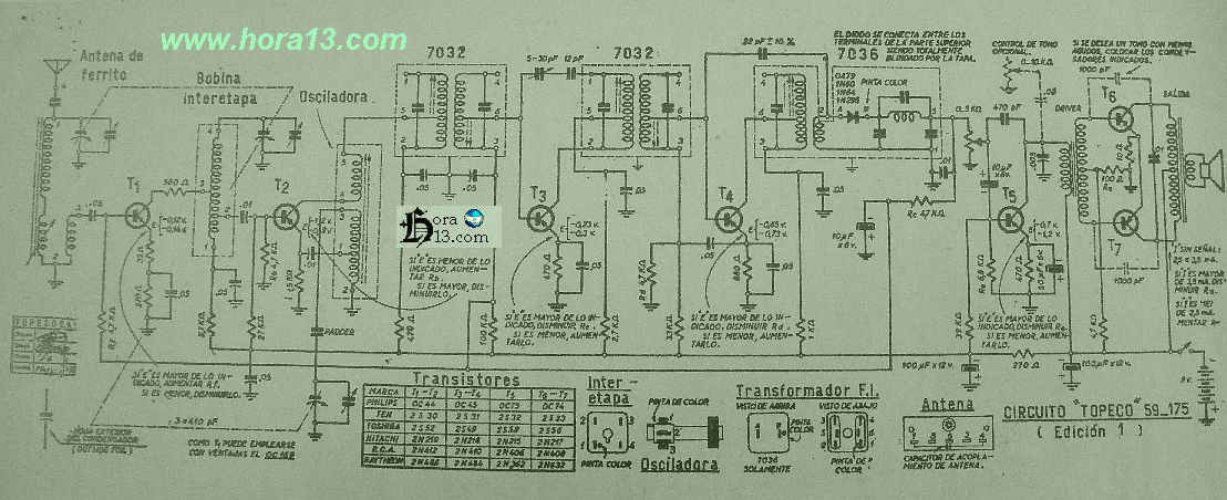Circuito radio a transistores Hitachi modelo TH 627 R