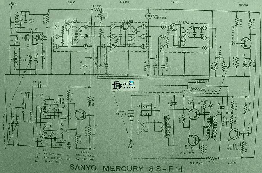 Circuito radio a transistores Toshiba modelos STR 193 Y 194