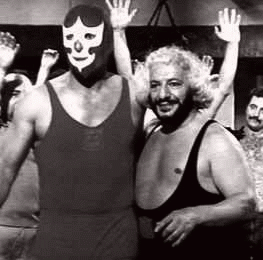 Caradajian y el caballero rojo en "titanes en el ring" |