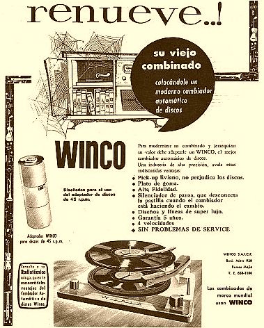 (BIRA)  Y este fue el comienzo , el mítico y legendario Winco que fue comercializado hasta principios de los setenta, Raúl Vega y su socio Dante Polano eran quienes estaban al frente de esta empresa que llegaron en determinado momento a producir 27 mil tocadiscos por mes.